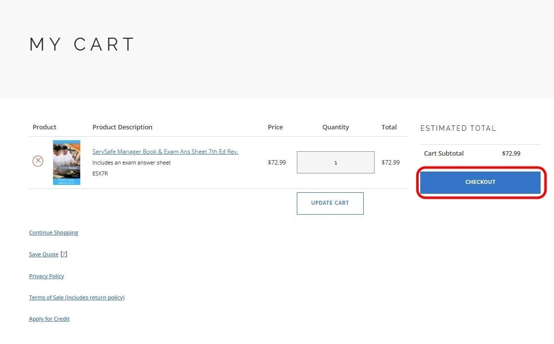 In the shopping cart, you may edit your items or Continue to Checkout.