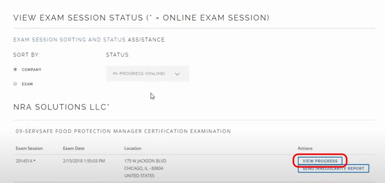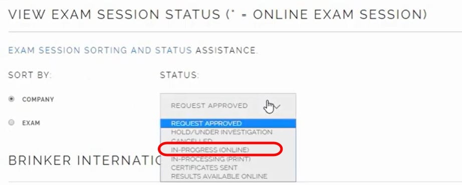 Under View Exam Session Status change your status from Request Approved to In-Progress (Online).