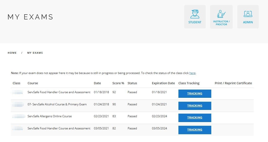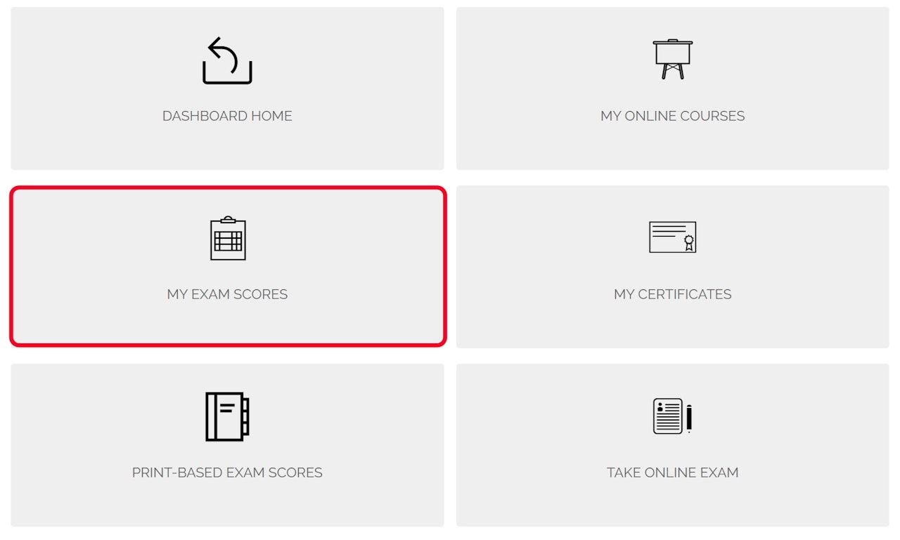 Exams scores and a domain summary will display. Select the hyperlink associated with your desired exam to view domain scores and exam details.