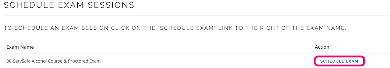 Select Schedule Exam for 08-ServSafe Alcohol Course & Proctored Exam.