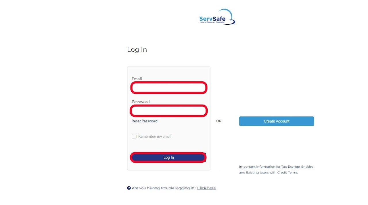 Log in to ServSafe.com