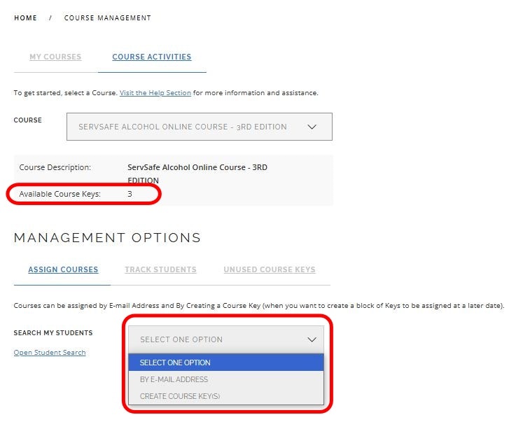 Courses can be assigned by e-mail address and by creating a course key (when you want to create a block of Keys to be assigned at a later date).
