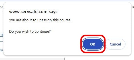 Select OK if you want to continue unassigning the course key.