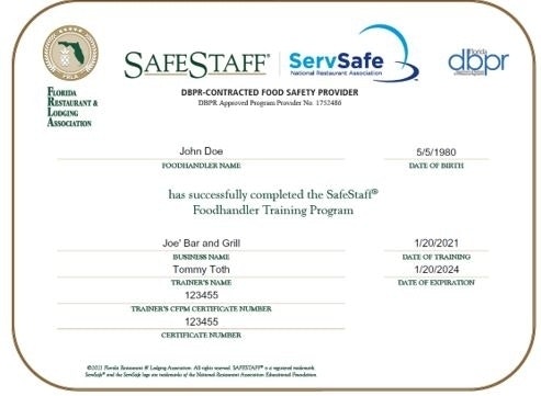 To update your company name on your SafeStaff - Florida Food Handler certificate, contact Customer Care with the certificate name and number and your personal information.