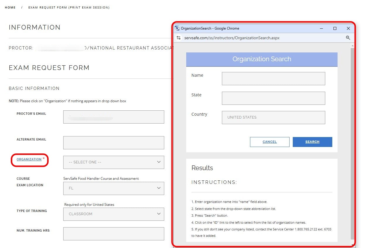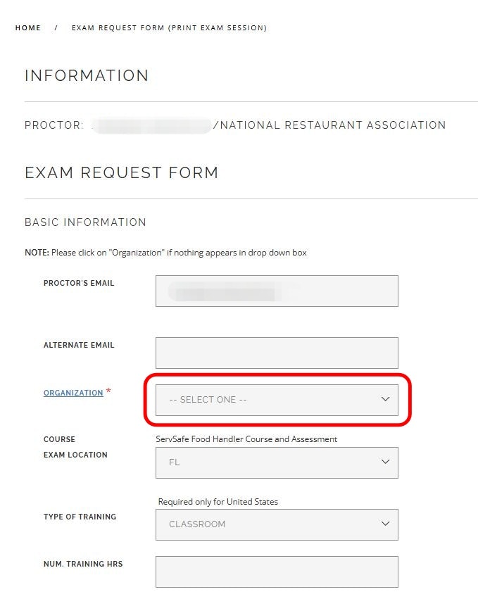 When scheduling a print or online exam, you will need to select an organization within the Exam Request page.
