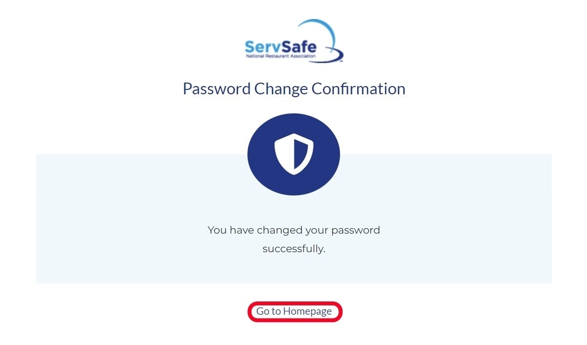 You will receive an on-screen confirmation once your password has been successfully changed. Select Go to Homepage to access your account.
