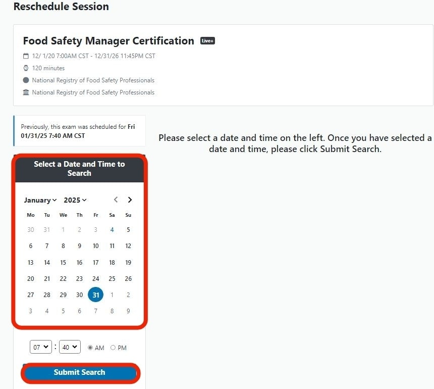 Choose a new date and select Submit Search.