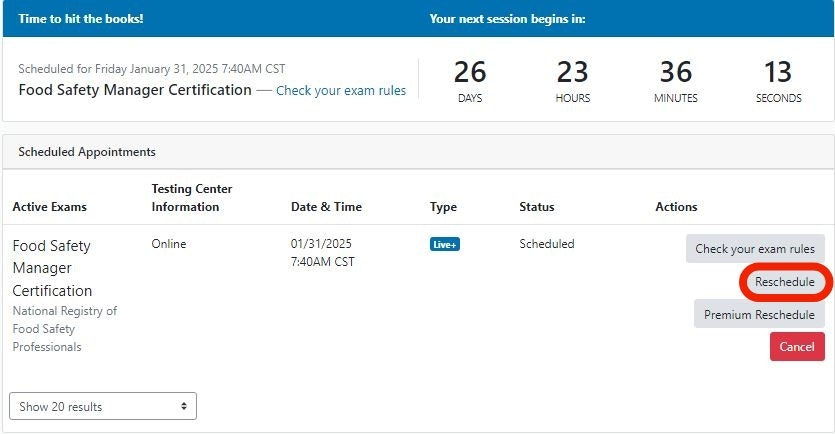 Select Reschedule on your dashboard.