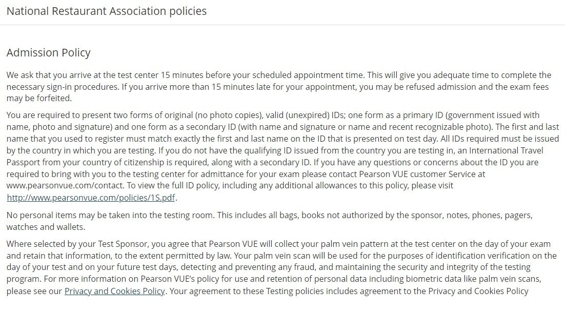 Agree to National Restaurant Association Policies
