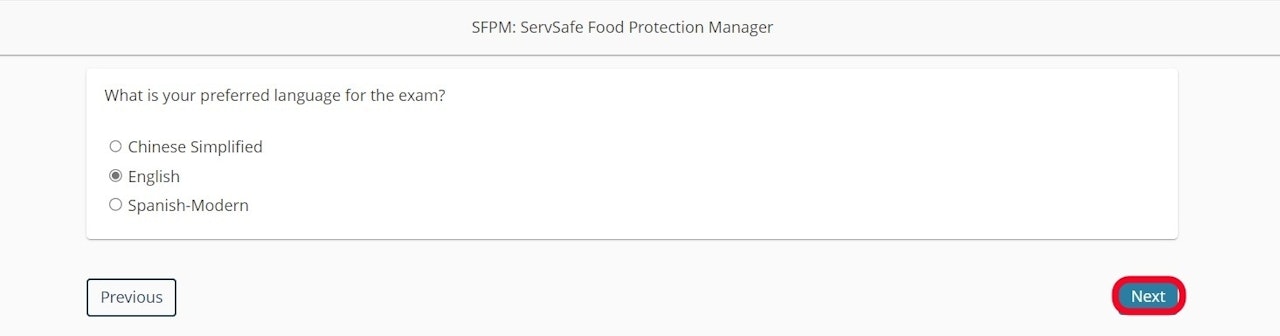Choose your exam language and select Next.