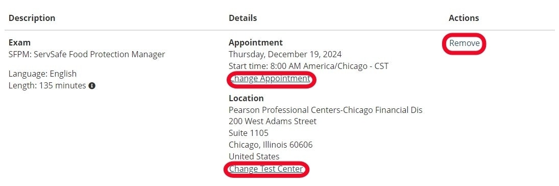 Under the Pre-approved Exams section, select the ServSafe Food Protection Manager Exam link.