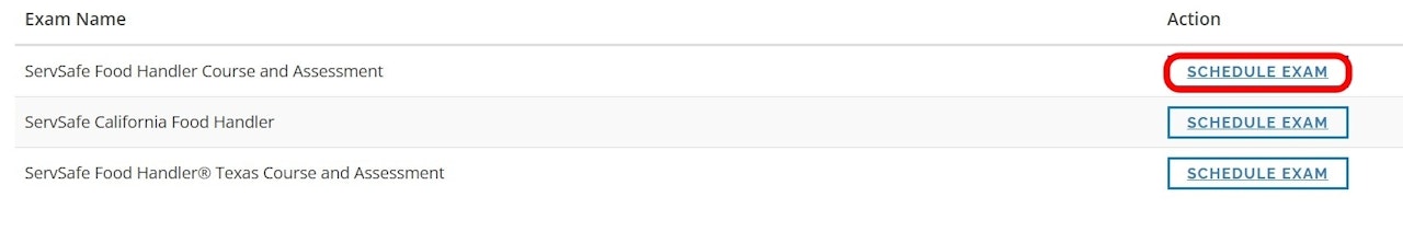 Follow these steps to schedule your print-based Food Handler Exam: