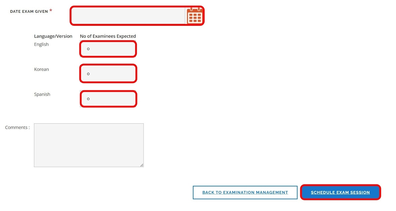 Complete all required fields and select Schedule Examination.