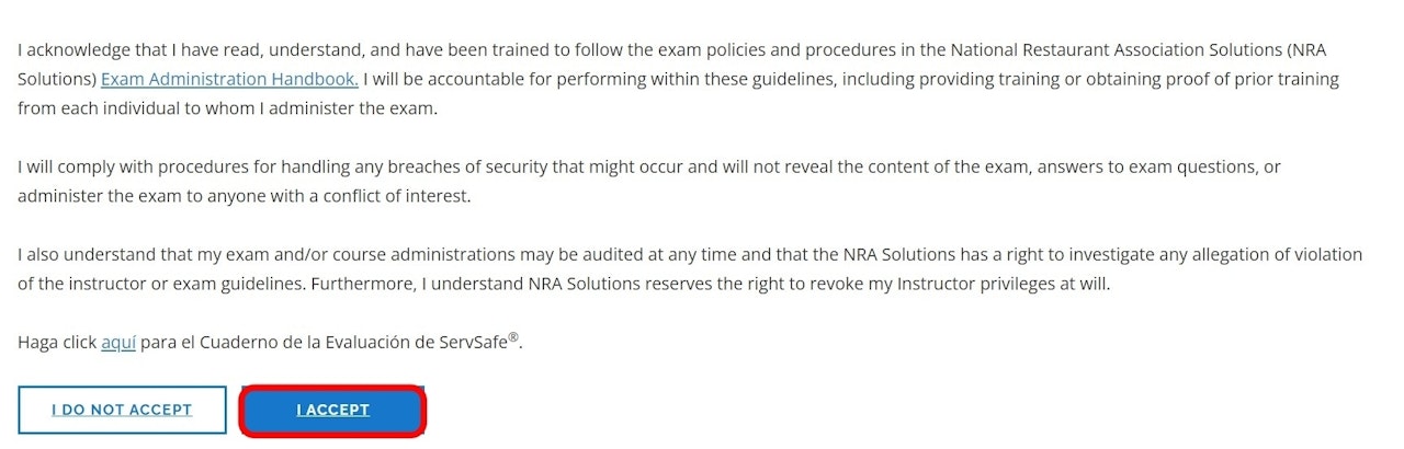 Log in to the ServSafe website.
