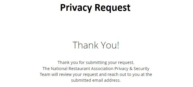 Privacy Request Success