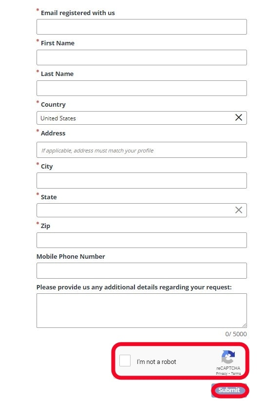Check the I'm not a robot box and then select Submit.